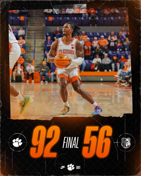 CLEMSON, S.C. – Clemson University men’s basketball beat Alabama A&M 92-56 on Friday night in Littlejohn Coliseum. The Tigers (7-1) had twelve different scorers on the