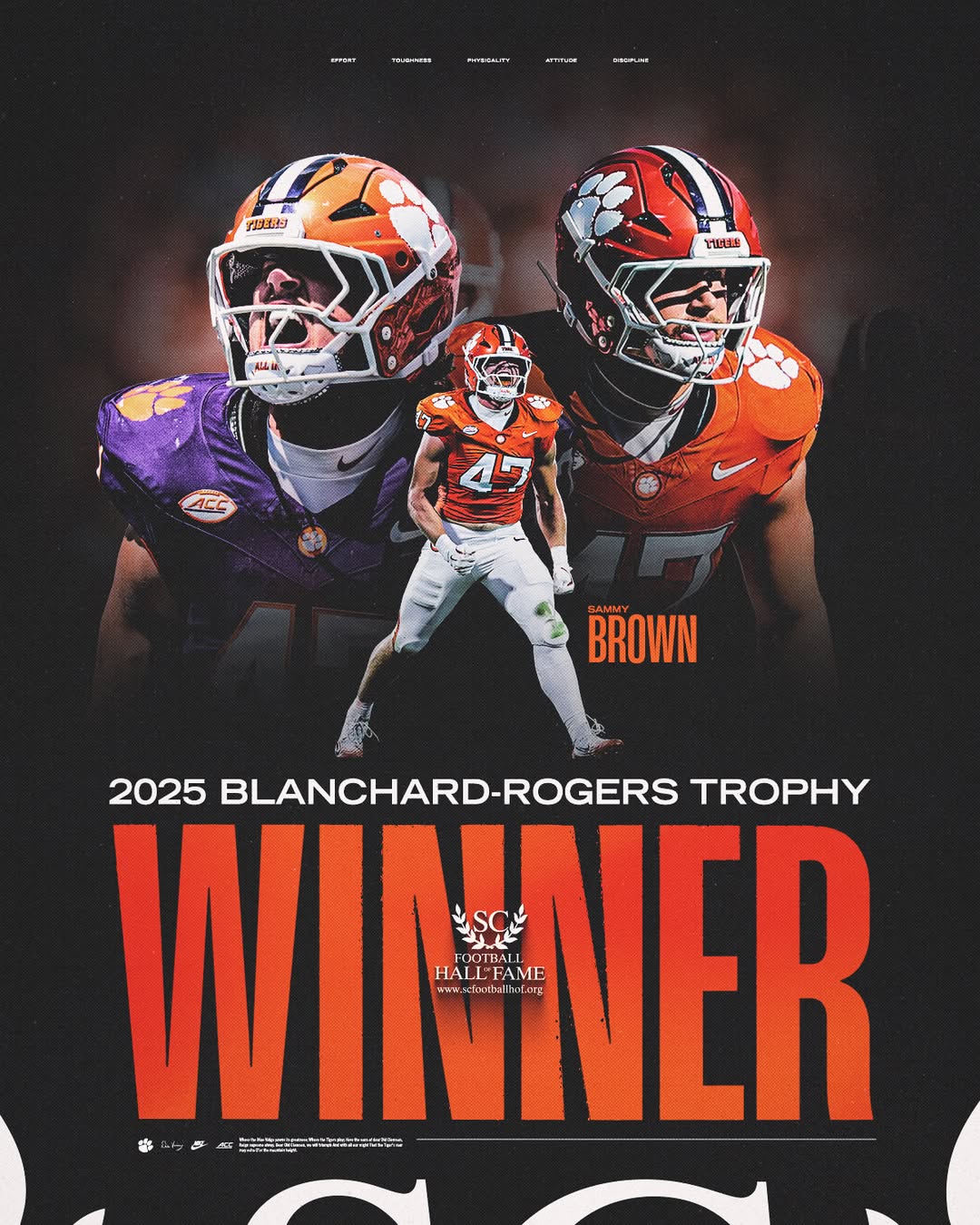 Sammy Brown Named 2025 Blanchard-Rogers Trophy Winner Greenville, S.C. — March 5, 2026 — The South Carolina Football Hall of Fame (SCFHOF) proudly announces