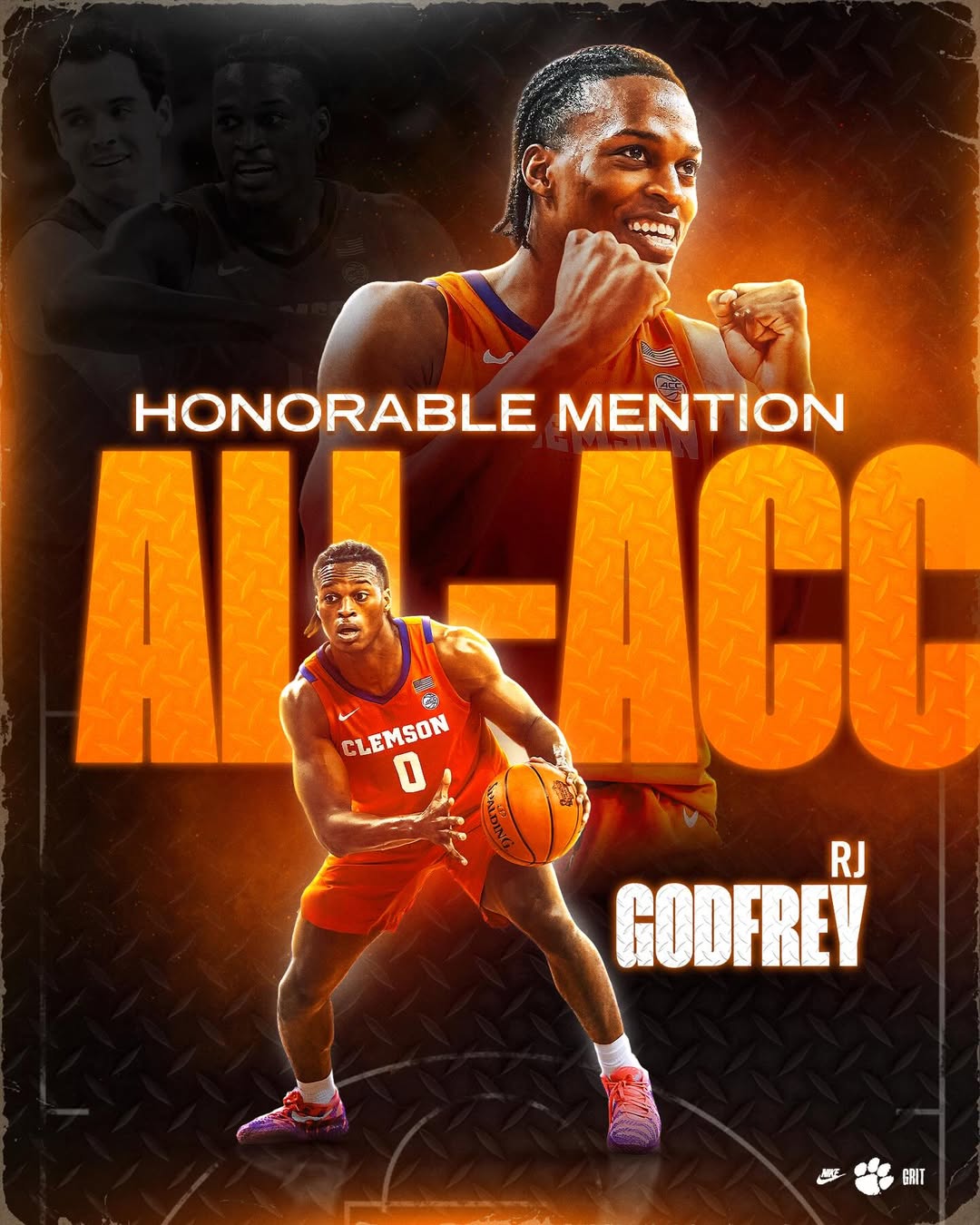 RJ Godfrey Earns All-ACC Honorable Mention First postseason conference honor for senior forward CLEMSON, S.C. – Clemson University men’s basketball’s senior forward RJ Godfrey (Suwanee, Ga./North Gwinnett/Georgia) earned