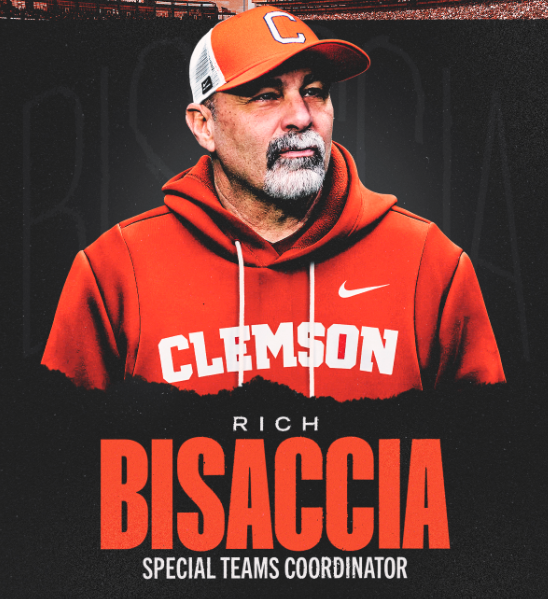 CLEMSON, S.C. — Head Coach Dabo Swinney and Clemson Football announced that Clemson has added long-time NFL special teams coach Rich Bisaccia as Special